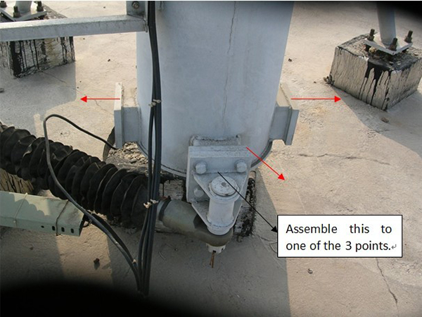 (3) Verifique se todos os pinos de localização estão instalados no lugar. Verifique se os furos de fixação do suporte do painel, haste e cubo estão instalados no lugar.