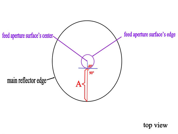 Passo 1: Medir as distâncias em linha reta entre diferentes posições (pelo menos 4 posições) da borda da superfície da abertura de alimentação e da borda do refletor principal. Conforme mostrado na figura da distância A, verifique se todas as distâncias são iguais entre si. Neste ponto, ele mostra que o alimentador está na posição central.