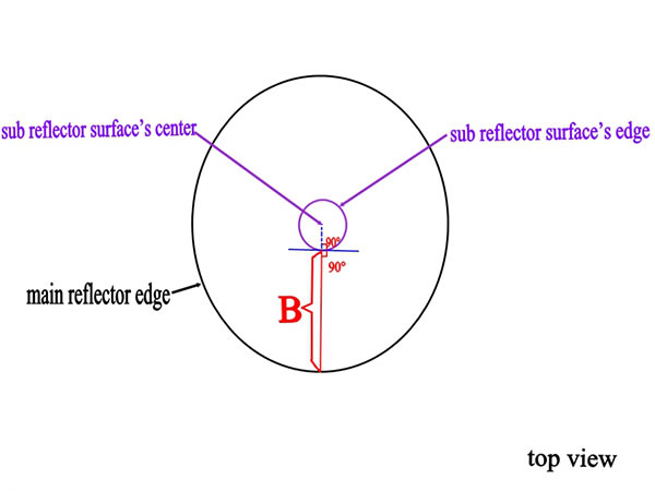 Passo 2: Medir as distâncias em linha reta entre diferentes posições (pelo menos 4 posições) da borda da superfície da abertura de alimentação e da borda do refletor principal. Conforme mostrado na figura da distância B, verifique se todas as distâncias são iguais entre si. Neste ponto, ele mostra que o alimentador está na posição central.